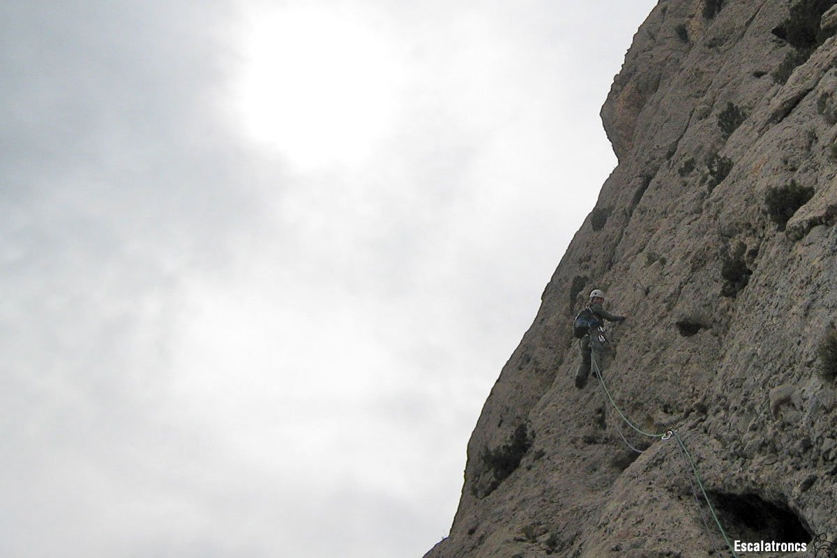 Seguim en diagonal cap a l’esquerra. Essent un llarg senzill te alguns passos una mica més difícils (IV i V). 6 parabolts per 50 metres.