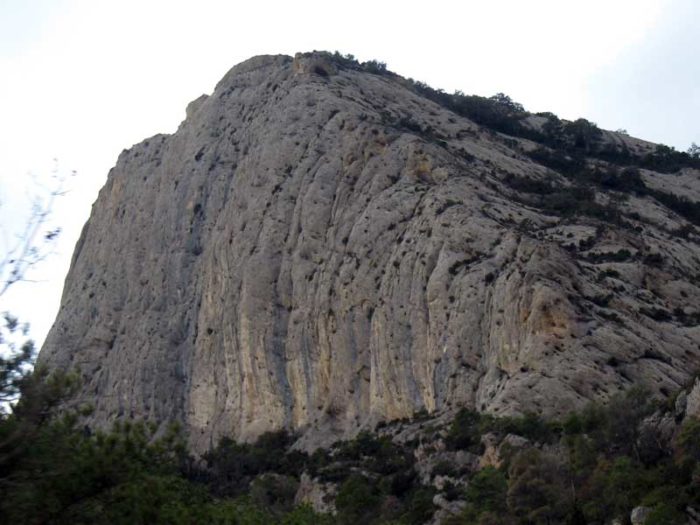 Sortim de la reunió cap a l’esquerra. Llarg fàcil amb un parabolt. Es pot llaçar algun arbust. 40 metres. Aquesta és la última reunió rapelable. A partir d’aquest punt es fa més difícil abandonar.