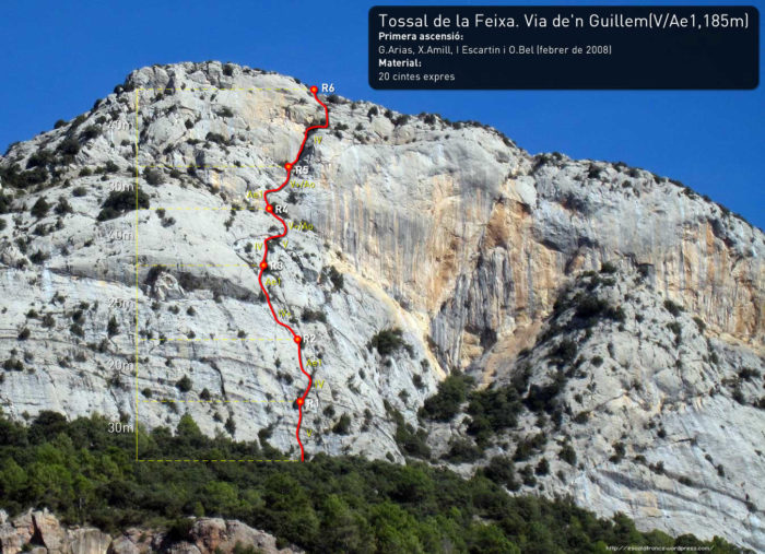 El Tossal de la Feixa es troba al sud-est de la Serra de Sant Joan. Són unes parets calcaries amb orientació sud. Es tracta d’un lloc tranquil amb una llarga aproximació a peu de via. La Via de’n Guillem és un itinerari “generosament” equipat d’un grau força assequible, que combina escalada lliure amb artificial.