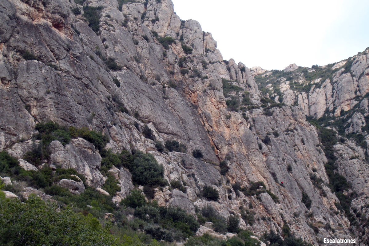Dos ràpels per la via. El primer de 50 metres fins la primera reunió i des d’aquí un segon d’uns 35 metres.