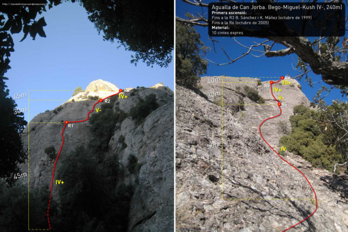 La via ressenyada és una sencilla escalada unió de dos vies: la Bego-Kush, que arriba fins a la tercera reunió i va ser oberta l’any 1999 i la Miguel-Kush que va des de la r3 fins al cim de l’agulla. En total 240 metres d’escalada que no passen de IV+.