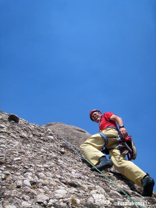 • Llàstima que la roca sigui discreta a la primera tirada, donat que dificulta encadenar tot el llarg en lliure. Roca sanejada.