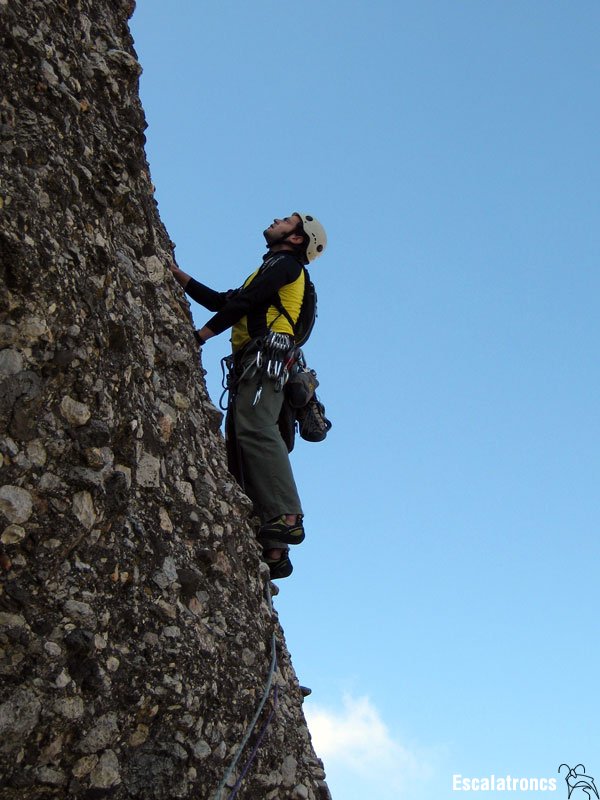 Sortim de la reunió en tendència a la dreta fins situar-nos al peu d’una placa vertical. Un cop xapat el primer espit hem de seguir recte, amb uns passos força estètics sobre bons còdols. Un cop passada la tercera assegurança la placa es va ajaient fins arribar a la reunió. 30 metres.