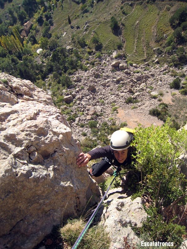 - Algun tram amb roca una mica dubtosa, sobretot a la sortida de la tercera reunió i després de sortir del primer diedre de la darrera tirada.