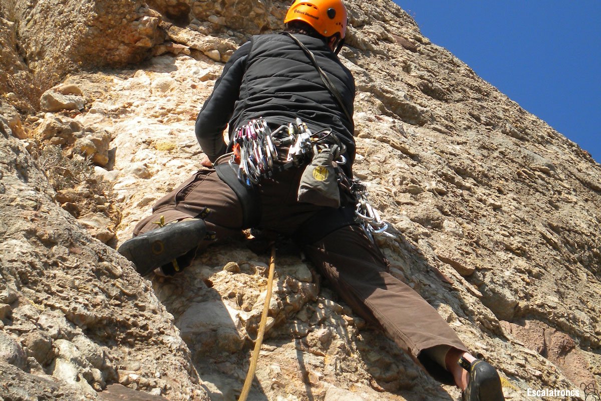 La segona tirada transcorre al principi, per l’esquerra d’una fissura, amb roca prou bona tot i l’aspecte, que ens deixa a una curta i dreta placa amb bona roca. Quan la placa es tomba el rocam empitjora però trobarem una corda fixa que ens ajudarà a arribar a la reunió. 30 metres.