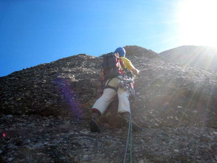 Un ràpel de 40 metres per la cara nord.