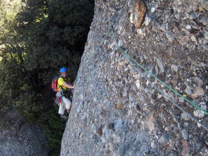 • Quan acabem la via hem d’anar amb cura de no fer caure pedres amb el rossec de les cordes.