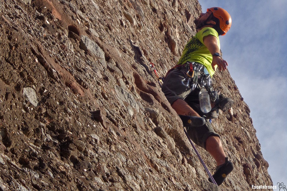 Aquesta tirada i la darrera si volem les podem fer a l’ensamble en una de sola. Hem d’anar cercant el camí més senzill cap al cim; els primers metres, que són els més “drets”, després només toca continuar grimpant fins la reunió. 45 metres, 3 parabolts.