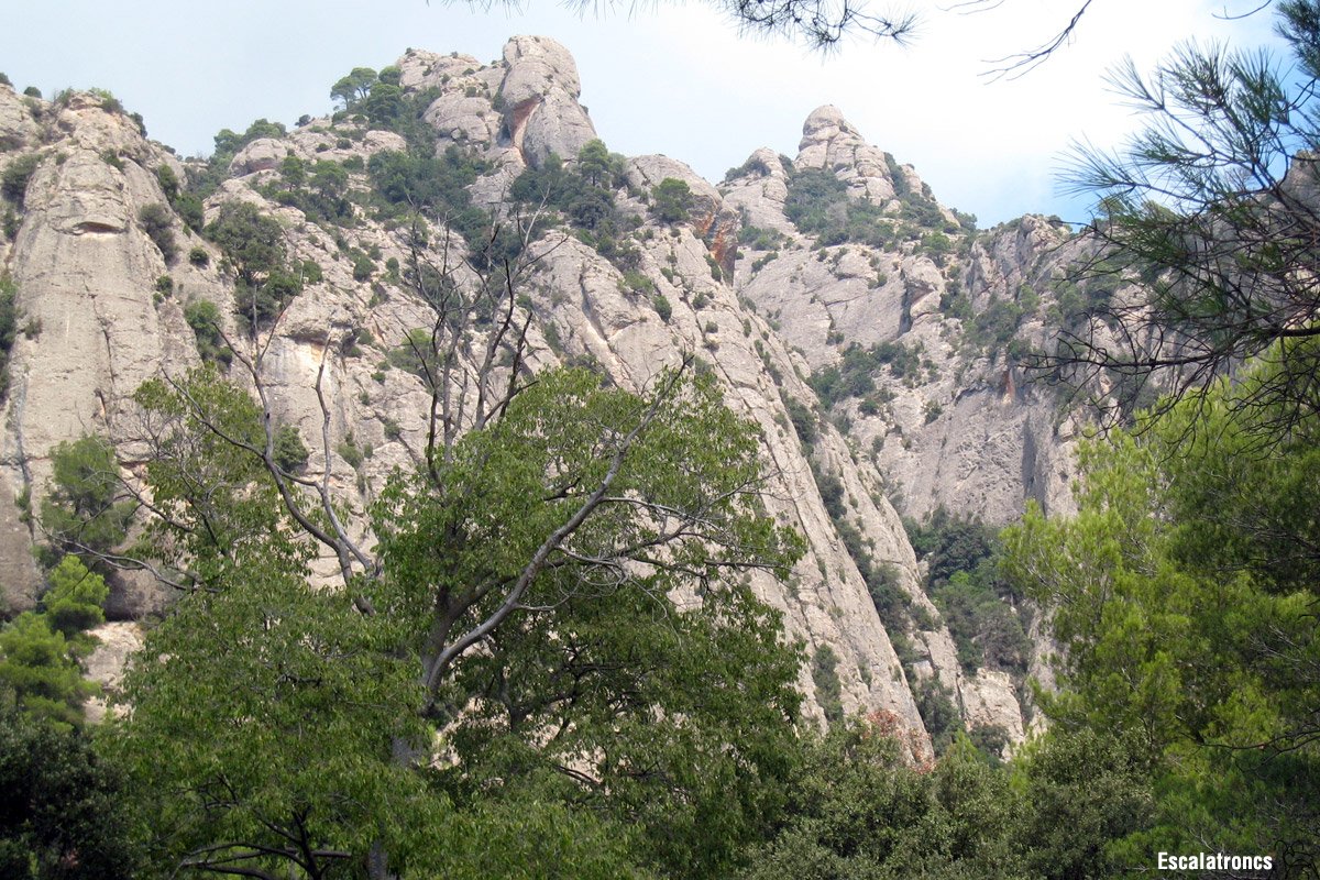 Un cop escalada l’Entre Línies quedem al peu de l’Aresta Brucs, una placa inclinada amb roca de primera que escalem en dos tirades. Podrem protegir els llargs molt bé amb tricams o aliens. En contes de fer la primera reunió a la savina hem continuat uns metres més per aprofitar dos ponts de roca, d’aquesta manera queda una reunió més còmoda.
