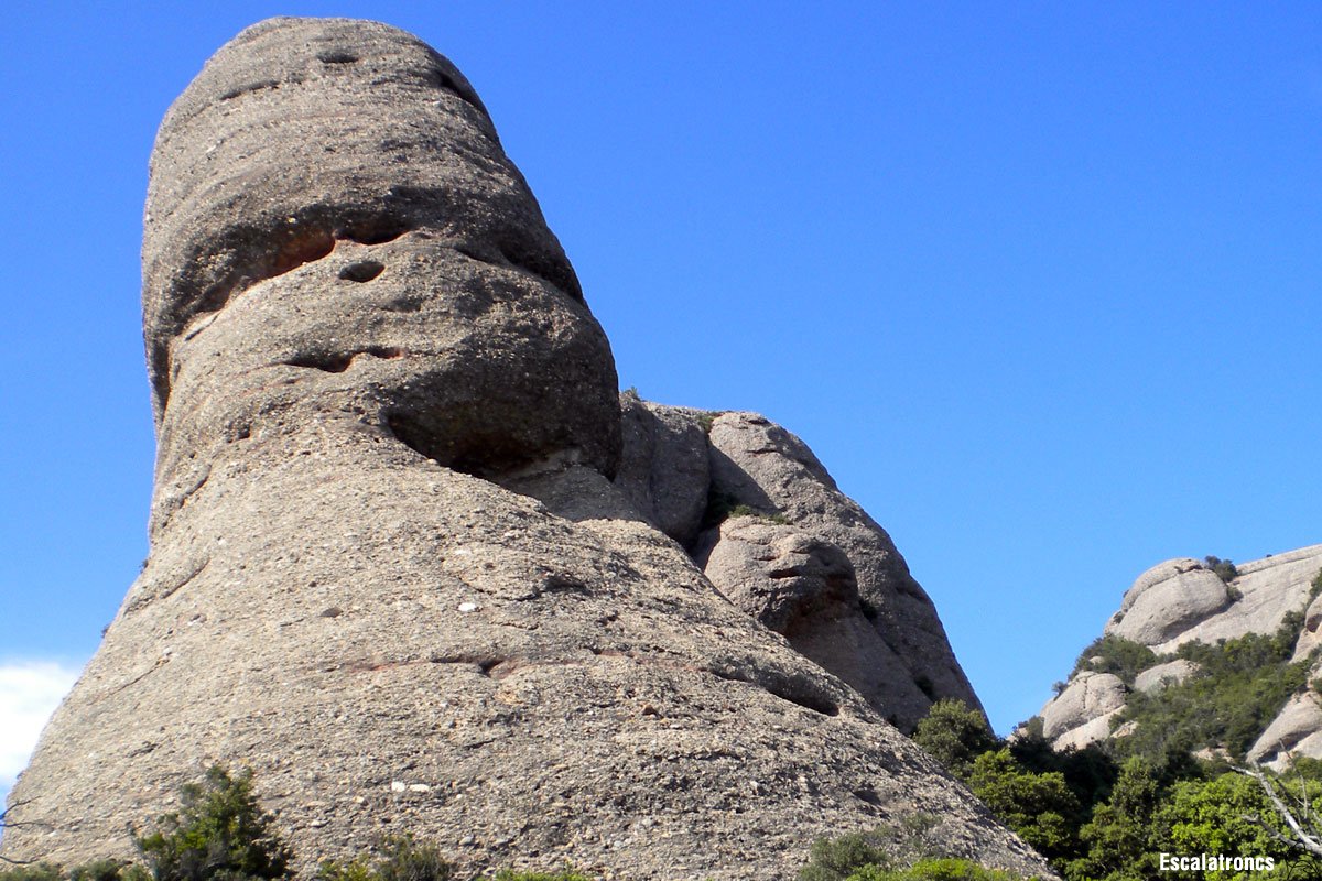 El superem fàcilment ajudats per grans còdols i seguim uns pocs metres verticals amb molt bona presa. De seguida la verticalitat disminueix i ara només ens restarà grimpar una mica fins l’avantcim. La reunió del ràpel es troba uns metres abans d’arribar al cim, just passat un collet. 35 metres.