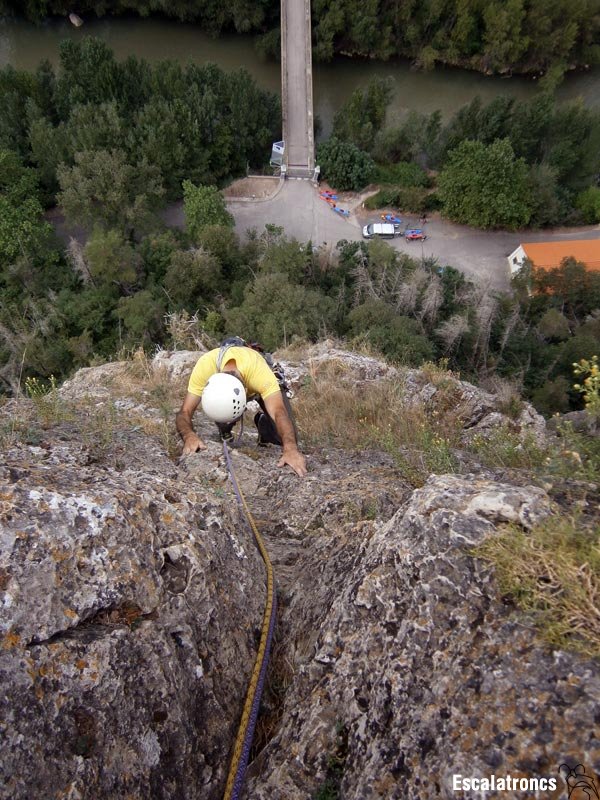 Un ràpel de 58 metres pel vessant oest (Es pot fraccionar donat que totes les reunions són rapelables).