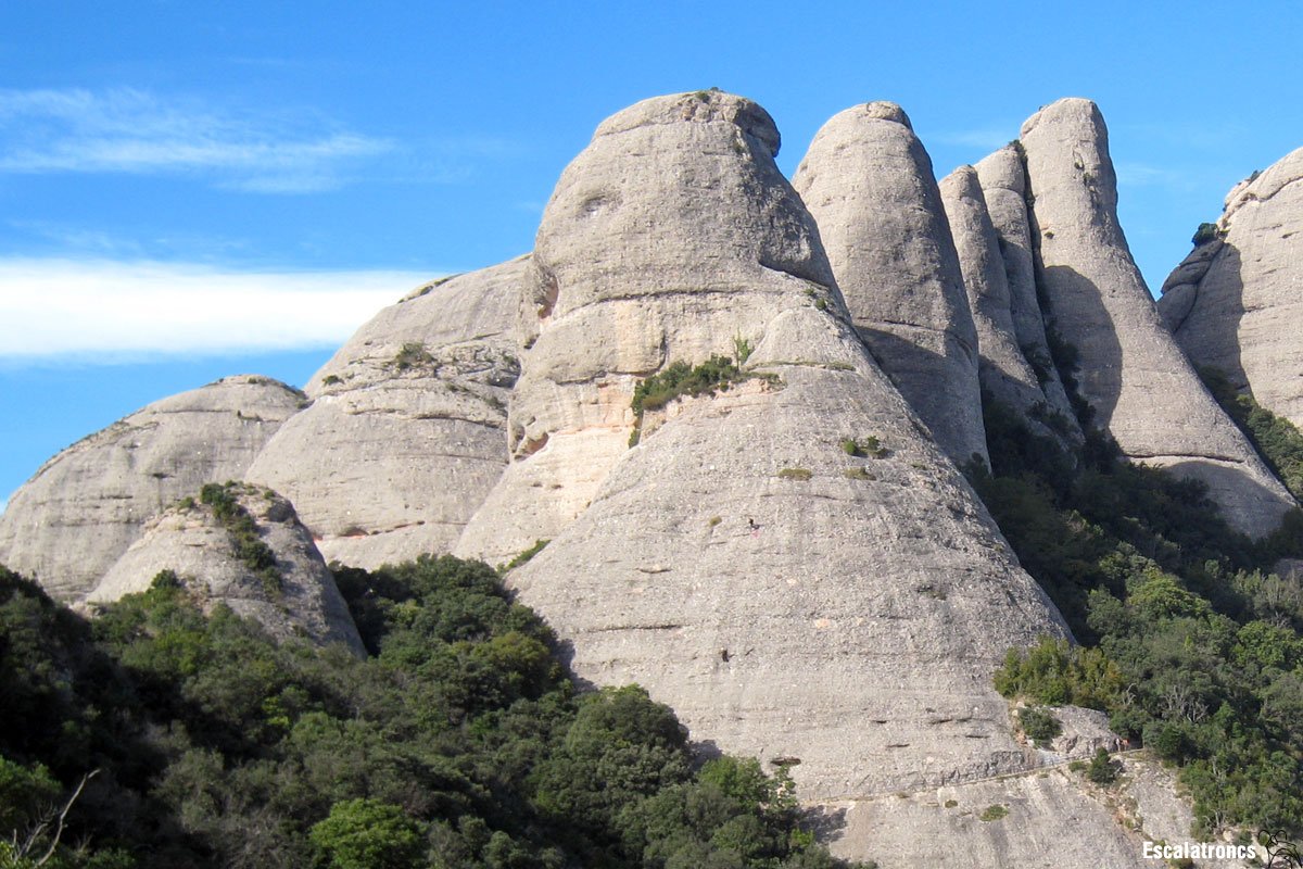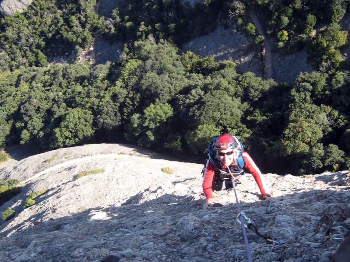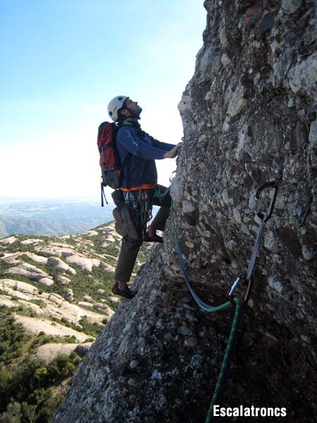 Sortim de la reunió flaquejant cap a l’esquerra uns 10 metres fins a l’alçada d’una gran pedra. Un cop aquí seguim una línia de parabolts cap amunt. Superem un petit llavi una mica extraplomat però molt ben assegurat. Després recte amunt fins la r (30 metres)