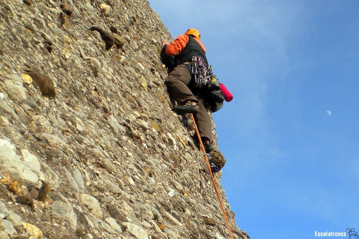 - Escalada amable, amb certa exposició, però amb bones possibilitats d’auto-protegir-nos a base de merlets.