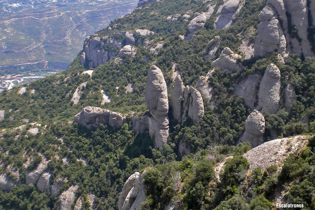 - L’Agulla del Rat Penat i el Cavall des de la bretxa que forma el Projectil amb la roca veïna