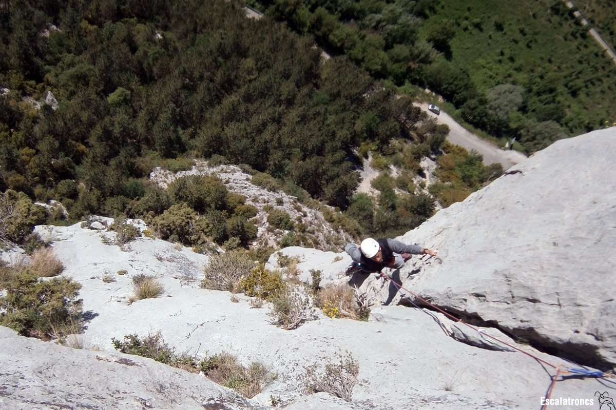 Pràcticament des-equipada haurem d’amanir-la al gust, sempre amb un bon emplaçament aprop. Els primers llargs són els més indefinits, especialment el segon, un autèntic rostoll. El gendarme de la tercera tirada es pot passar per fora, molt millor.