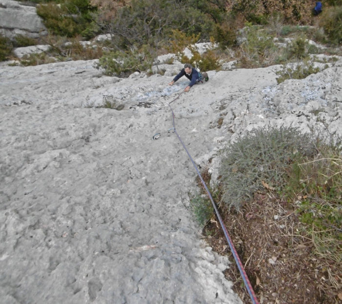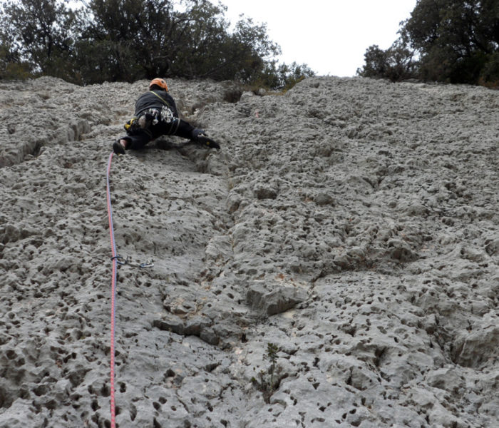 Agradable, ràpida i sobre roca molt bona. El llarg més interessant és el tercer mercès a la seva roca sensacional. La via resta totalment equipada amb parabolts, algun pont de roca i alguna savina amb baga passada. Si es desitja es pot dur alguna baga per reforçar. Totes les reunions són rapelables.