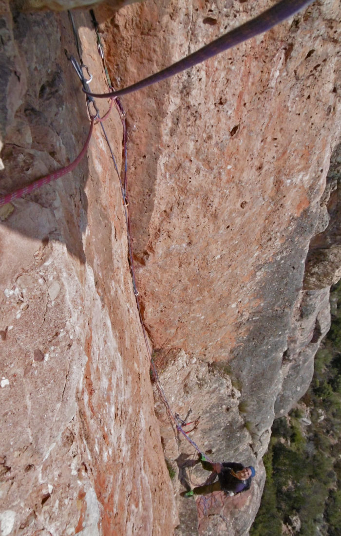 - Material: 12 cintes, joc de Camalots del #0.4 al #2 repetint #0.4, #0.75 i #1. Estreps i opcionalment un petit joc de tascons