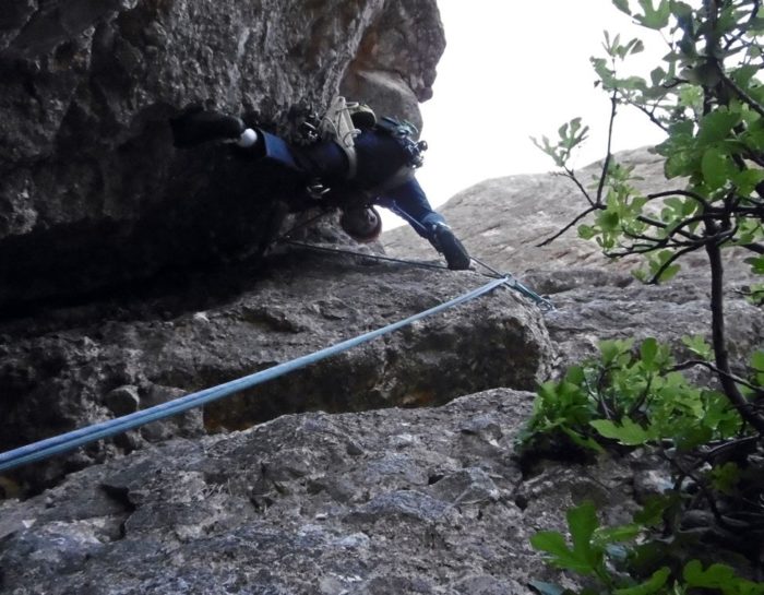 - Equipament: Via semi-equipada amb parabolts, claus i ponts de roca