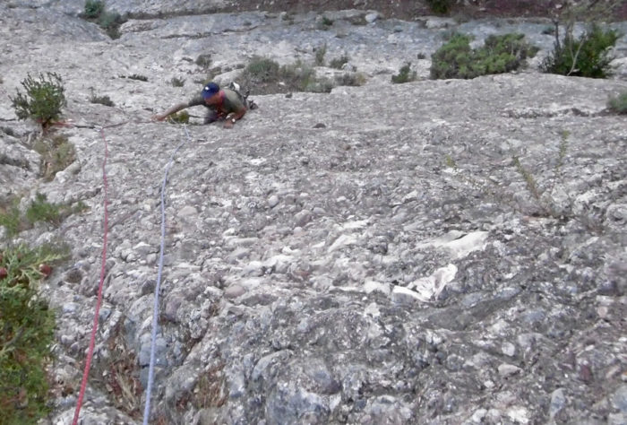 Hi destaquen les tirades tercera i cinquena, dos llargs de placa sobre roca excel·lent. Ideal per una matinal quan cerquem ombra.