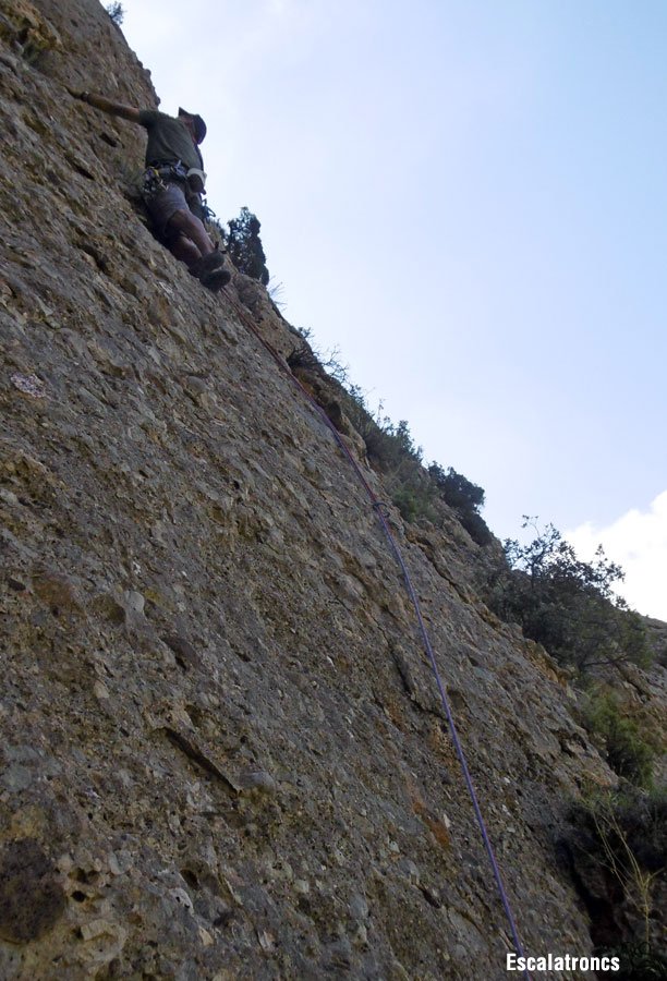 Via completament equipada amb parabolts amb dos llargs clarament més interessants que la resta. Ràpida d’escalar i amb ombra fins aproximadament les dues, esdevé una bona opció per una matinal a l’ombra.
