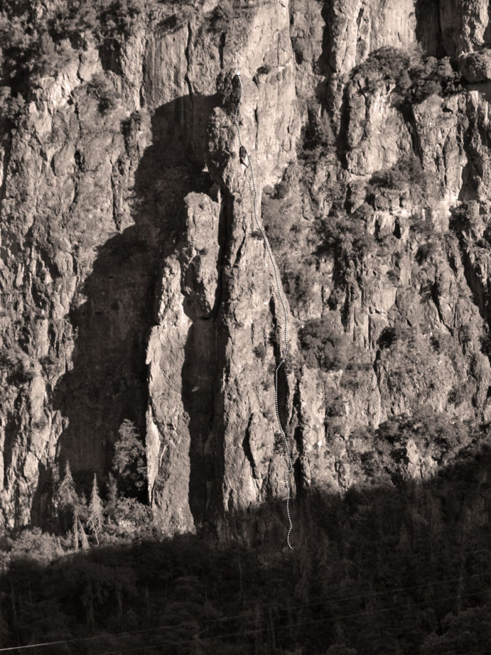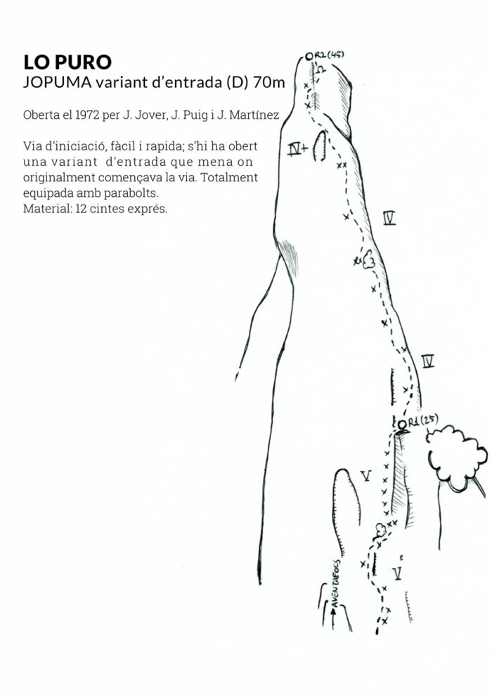 A la sobre-explotada Agulla del Puro hi trobem aquesta senzilla ruta, que bé pot servir com a introducció a les vies de més d’una tirada.