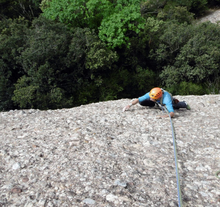 Per contra, l’interessant vessant sud-oest, es un llaminer mantell conglomerat de bona qualitat. La via Superferós hi troba el pas més lògic, aconseguint una escalada elegant i ben trobada, perfecte per combinar amb alguna ascensió propera i arrodonir la jornada a una de les raconades especials del massís.