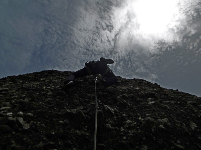 Curt ràpel vessant nord. Des d’allí baixem per la canal fins trobar el camí d’Alts Frares.