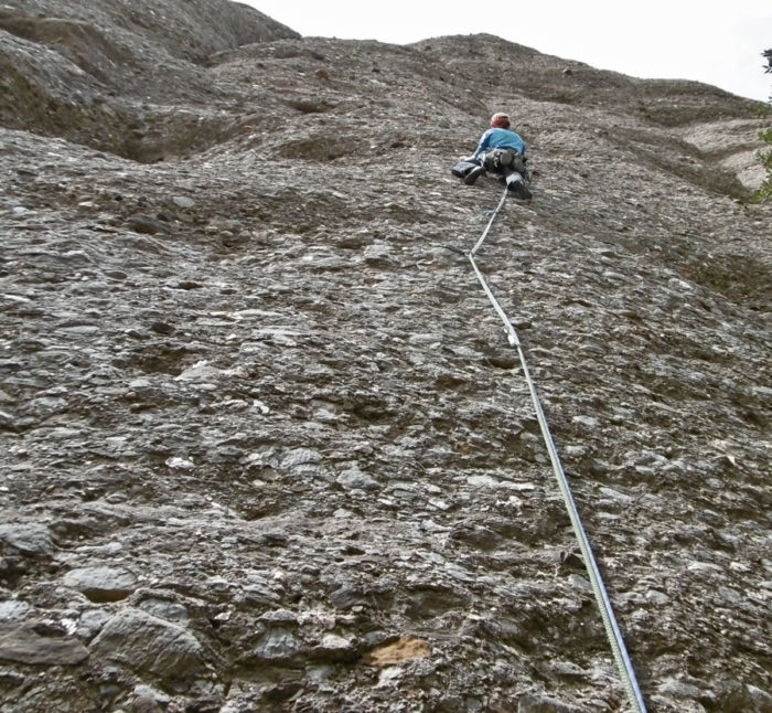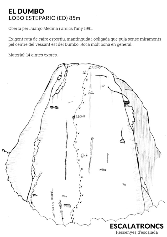 Navegar per aquest imponent escut que és el vessant est del Dumbo esdevé tota una experiència. D’una verticalitat severa i amb uns còdols més aviat de gra petit l’escalada es torna tècnica i atlètica. Fer-ho per la Lobo Estepario és tot un luxe, oberta per sota és una lliçó de savoir faire. Toca escalar de baix a dalt.
