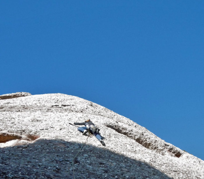 Ràpel curt des d’una savina vers el vessant oest.