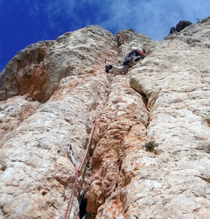 • Equipament: bastant equipada amb espits, parabolts, un clau i ponts de roca.