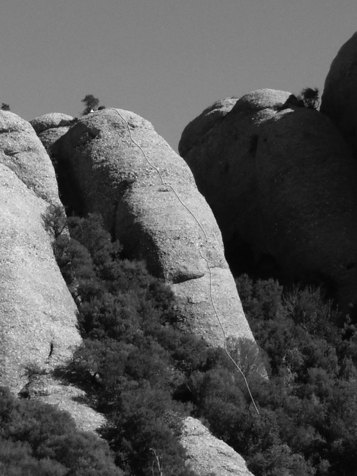 Deliciós itinerari, fàcil, molt assegurat i sobre roca exel·lent. El pas clau el trobarem a la sortida de la reunió, un pas de V per encintar l’expansió.