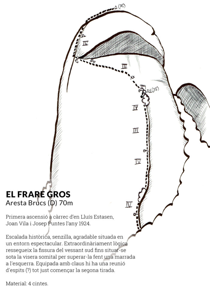 Al Frare Gros hi conviuen dues realitats oposades, la vertiginosa contundència del vessant nord i assolellada amabilitat del vessant sud, que alhora domina la banda de migjorn dels Alts Frares.