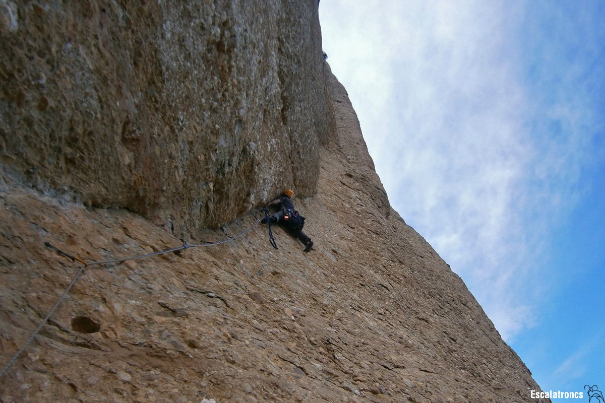 - Equipament: Via bastant equipada. Fins a la R3 (inclosa) re-equipada amb parabolts. A partir d’aquest punt amb material original, abundant però rovellat.