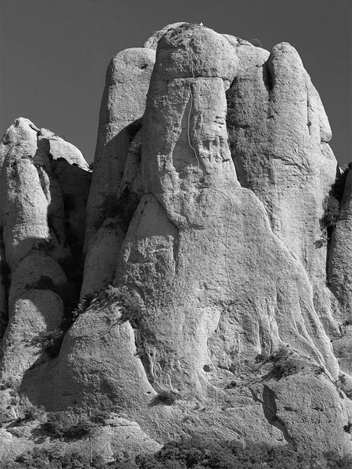 Des de la tercera reunió és fàcil escapar-se cap a la Cerdà-Riera. La quarta tirada marxa cap a l’esquerra,ens saltem una reunió de burins i enfilem en Ae recta a munt fins atènyer la fissura. A partir d’aquí, i després de salvar un tram extraplomat (A2) tenim una extraordinària escalada, atlètica i amb ambient de gran paret.