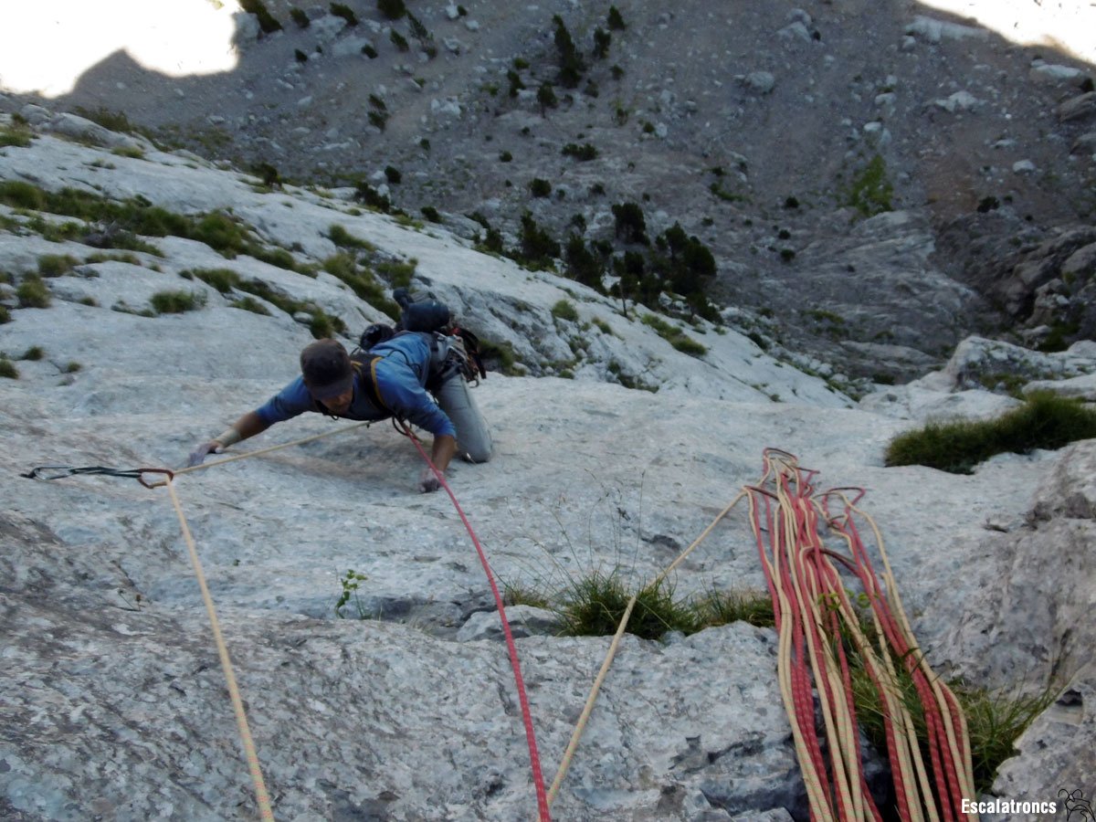- Material: 10 cintes exprés, joc de tascons i Camalots, alguna baga útil