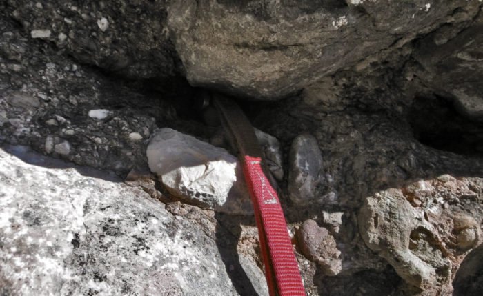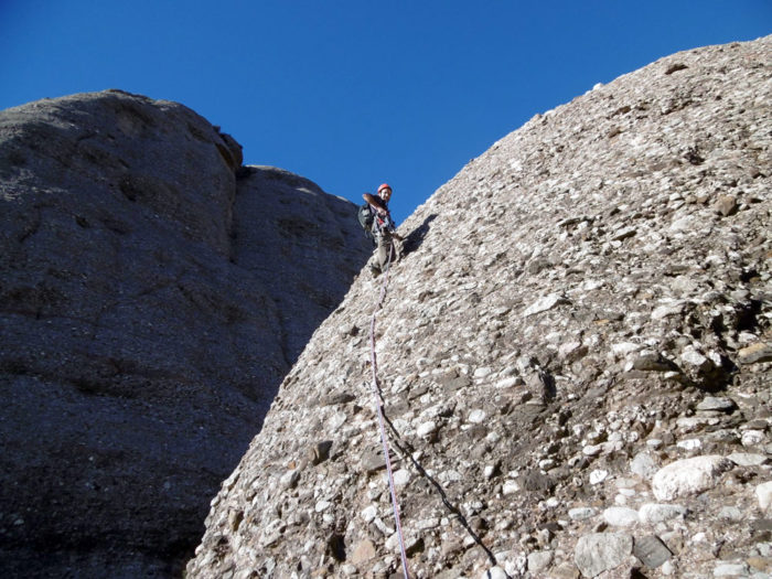 Des de l’Agulla Mare un ràpel de 40 metres pel vessant sud-oest.