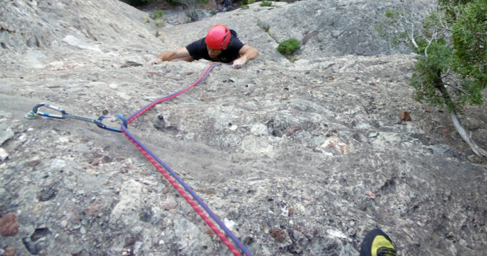 Si el primer mur era bo el de la segona tirada és pura delícia. Continuïtat sobre bons agafadors excepte una petita secció a mitja tirada que li dóna el grau.