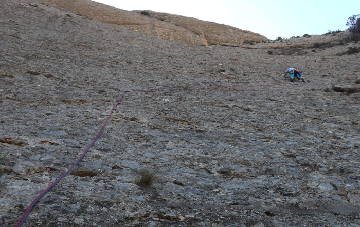 La segona tirada, mantinguda en cinquè grau, va caient a la dreta mentre zigzagueja guanyant metres amb les assegurances prou allunyades com per anar ben concentrats.