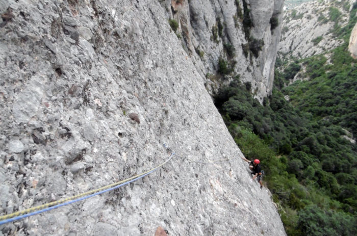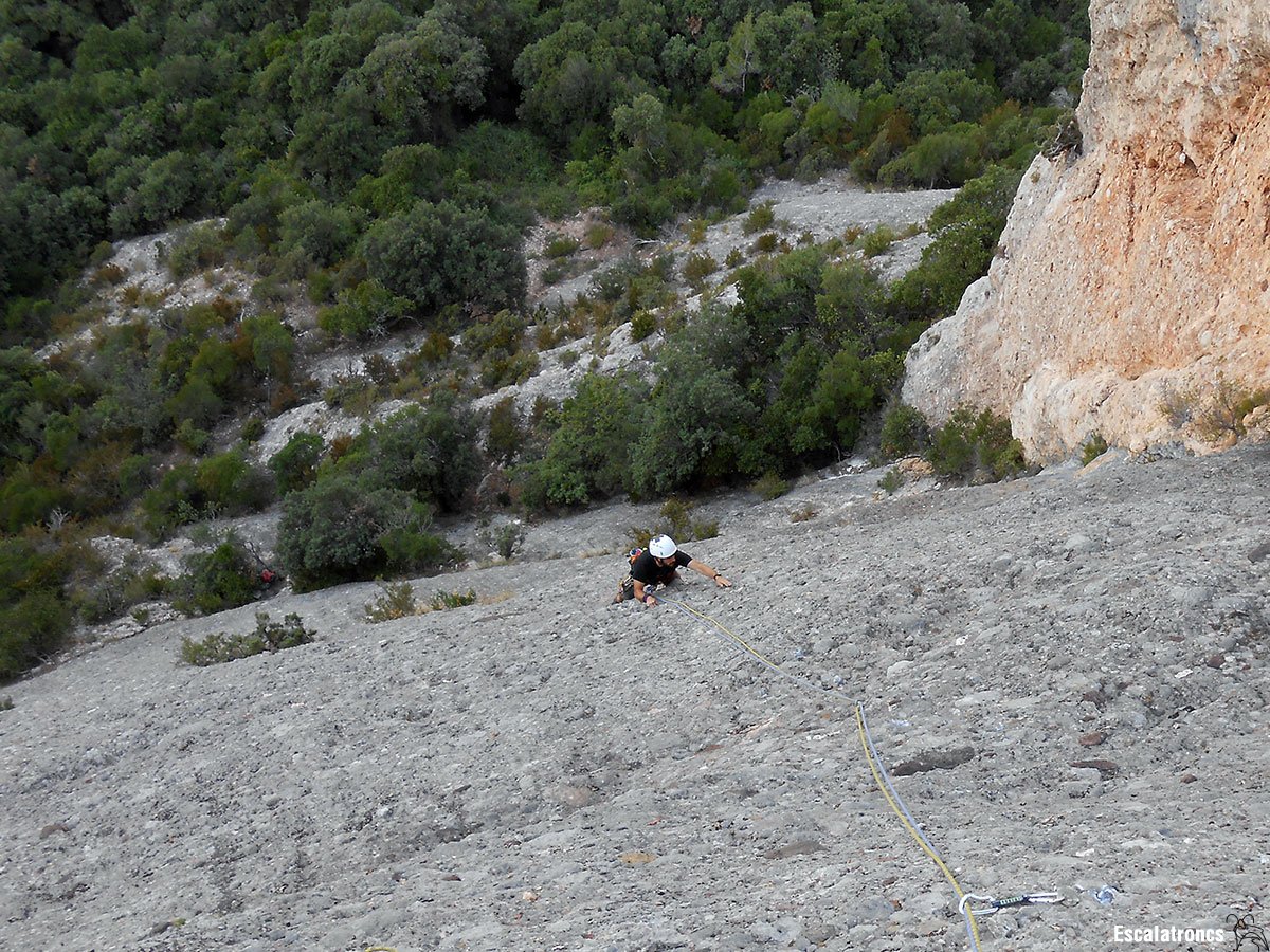 La Crispín és la darrera via abans d’arribar al característic diedre de la banda esquerra de la paret. Hi trobarem una escalada elegant, sempre amb un cantell a mà i amb les assegurances justes per considerar-la equipada. No us perdeu el darrer llarg, un mur de forats senzillament esplèndid.