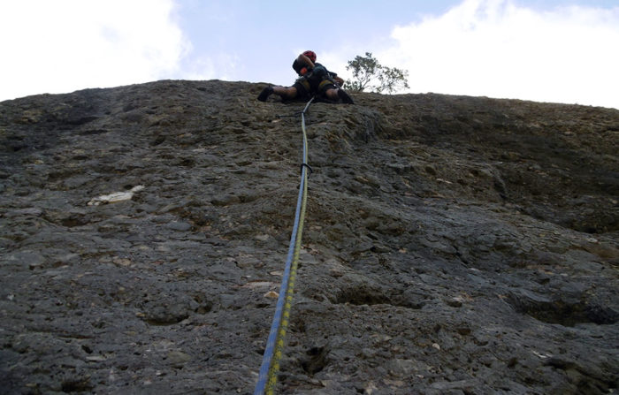 Des del final del darrer llarg flanquegem a la dreta per anar a buscar la reunió de la Digeridoo. Des d’aquesta fem un ràpel de 60 metres justo fins al terra (es pot fraccionar al gust).