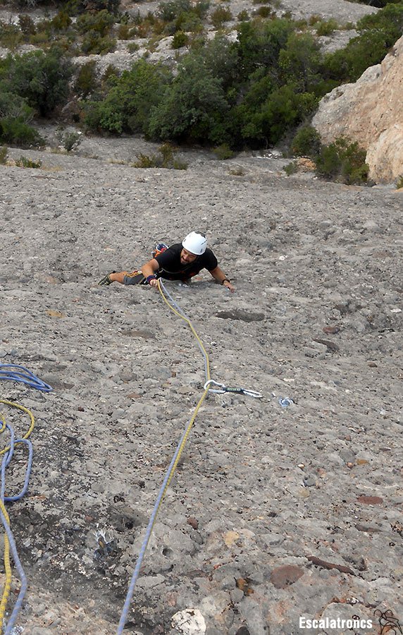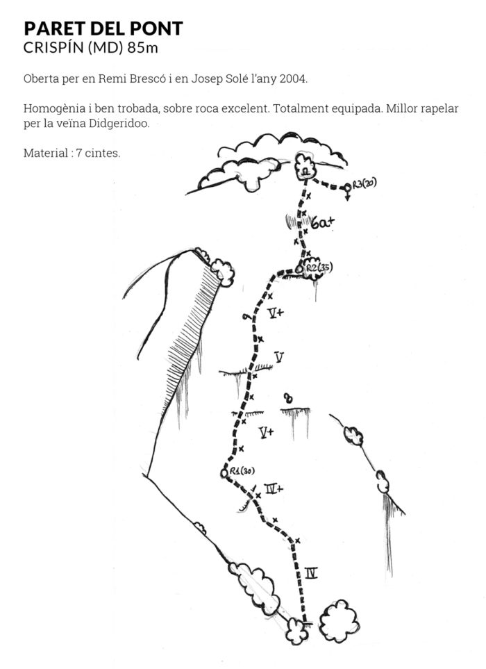 La Crispín és la darrera via abans d’arribar al característic diedre de la banda esquerra de la paret. Hi trobarem una escalada elegant, sempre amb un cantell a mà i amb les assegurances justes per considerar-la equipada. No us perdeu el darrer llarg, un mur de forats senzillament esplèndid.