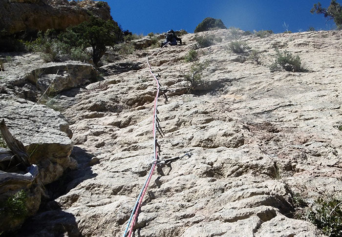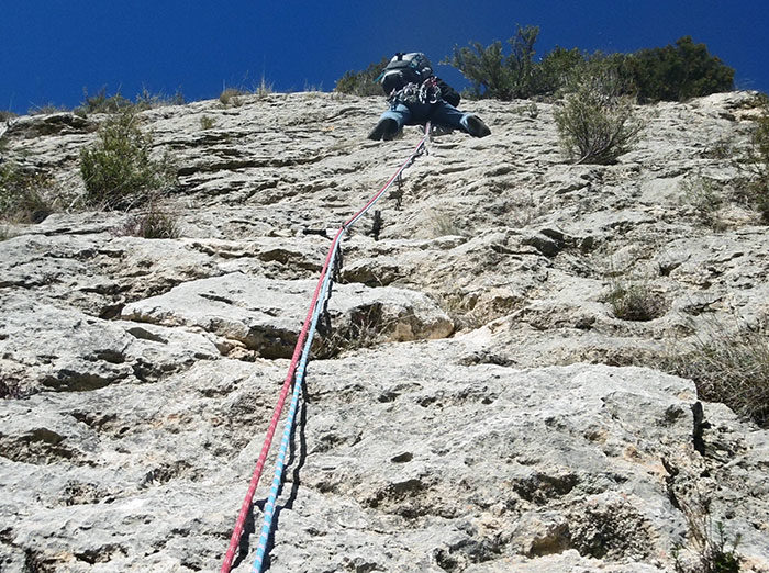 • Equipament: Via pràcticament equipada amb parabolts i claus.