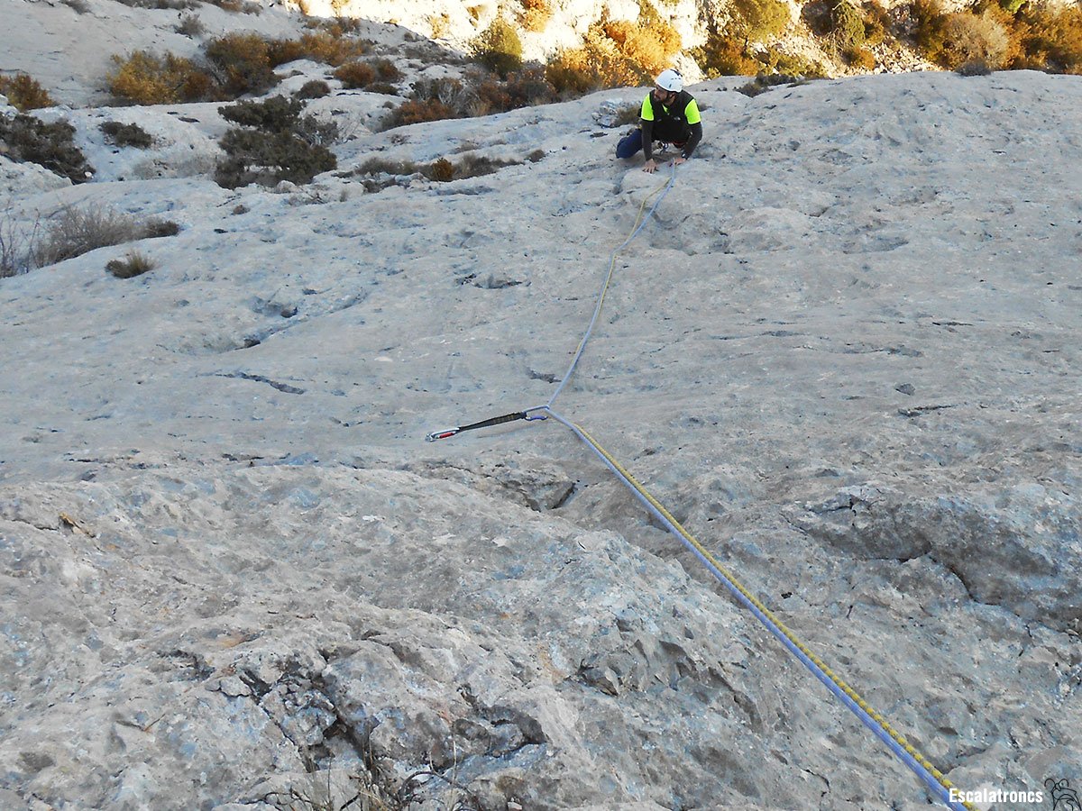 Via amb roca de qualitat, es pot fer amb el que hi ha posat, tot i que no costa gens augmentar la protecció amb un joc de friends. El segon llarg originalment es feia en dos tirades tot i que pensem que amb una sola guanya interès. A darrera hora li toca l’ombra, a tenir en compte en dies freds. Molt recomanable.