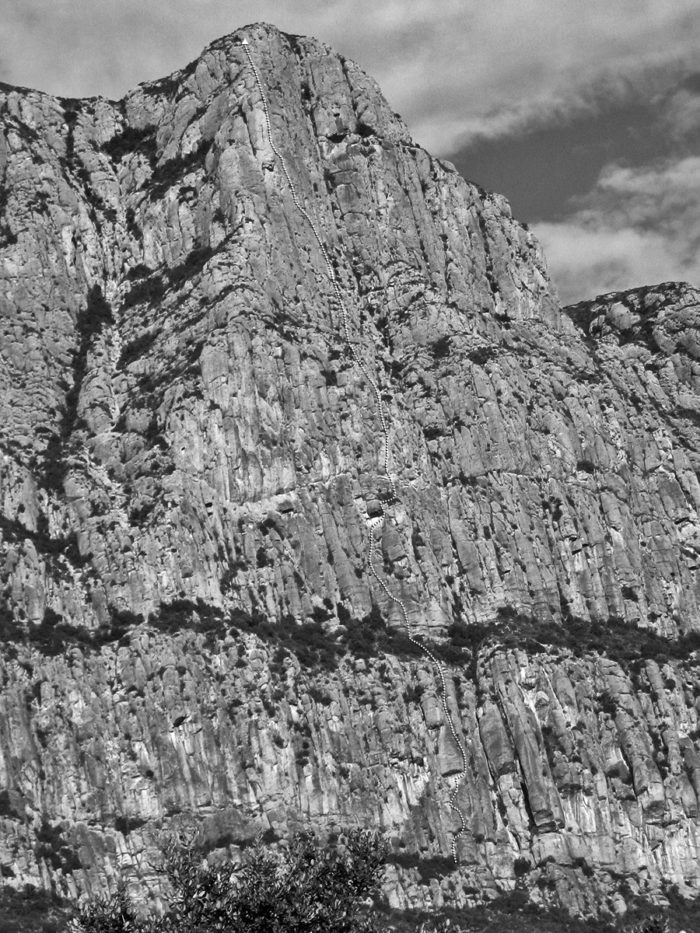 En general la via és mantinguda en V/V+. Tocarà acabar de completar l’equipament a més d’un punt. L’inici de la via el fem aprofitant l’entrada de l’Aranya per de seguida marxar cap a la dreta. Al segon llarg el primer clau no es veu, està a la segona fissura. A la cinquena tirada i sobretot a la sisena trobarem la roca més discreta de la via. Per contra, a partir de la gran feixa el rocam es torna excel·lent. Al darrer llarg, sens dubte el millor, hi falta el segon espit; no obstant es pot protegir bé amb un friend mitjà.