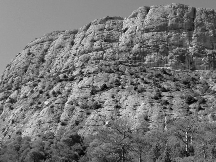 La via es divideix en dos trams clarament diferents. La primera meitat, fins a la tercera reunió, evoluciona per plaques inclinades, on l’escalada és més aviat d’adherència. La segona meitat transcorre per terreny ben vertical, amb un curt tram d’A0 a l’inici de la quarta tirada i la resta en lliure fins a 6b. Destaca especialment els dos darrers llargs de corda, el cinquè amb una secció de 6b tècnica molt bonica, i el darrer, vertical i amb bona ganda.
