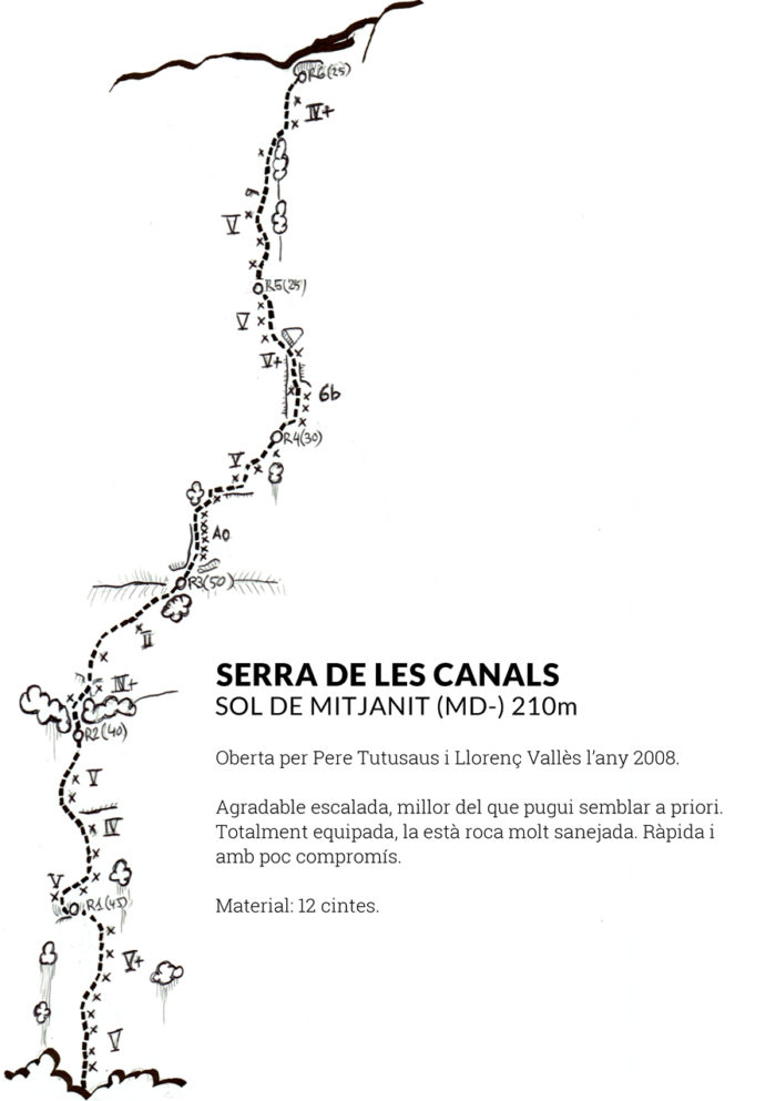 La Serra del Canals tanca la plana d’Oliana cap al nord, formant una muralla de dimensions gens menyspreables. Malgrat això, mai ha estat un objectiu prioritari pels escaladors car a priori la seva roca conglomerada de consistència més aviat dubtosa no convida a l’escalada. No obstant hi ha uns poc itineraris oberts que cerquen la manera d’enfilar-hi.
