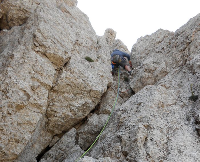 El rocam és bo en tot el recorregut excepte al darrer llarg de corda.