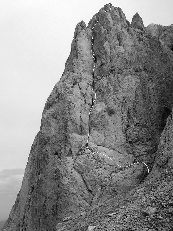 Via de fissures, la part més difícil la trobarem a la segona tirada, una fissura de donar la talla; i la més obligada la cinquena, que és per on van tirar els Estorach. La via original fa una marrada a dretes.