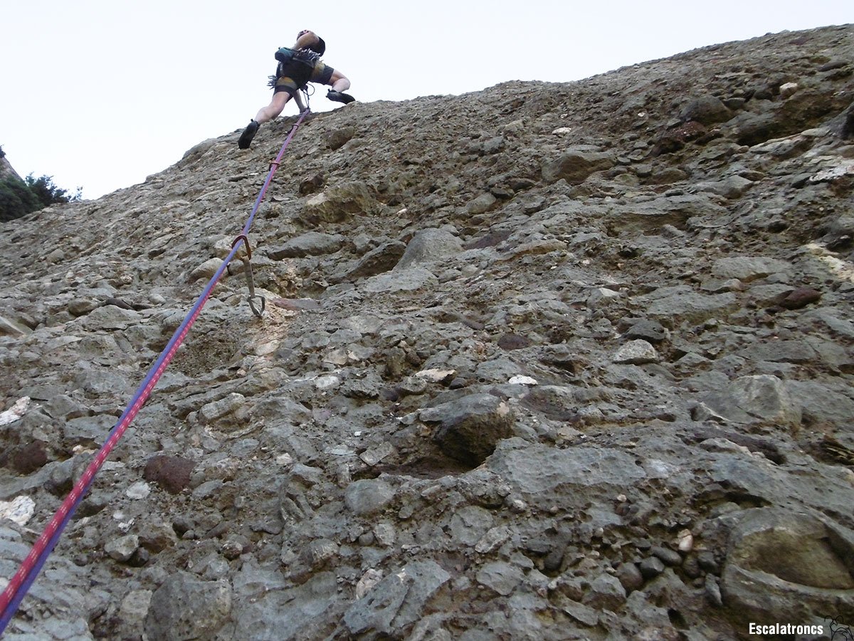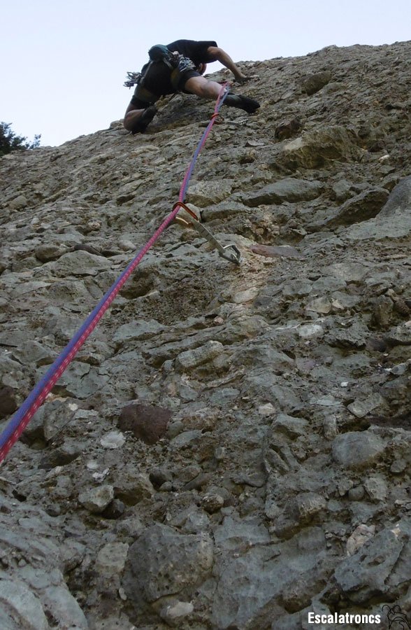 Si el primer mur era bo el de la segona tirada és pura delícia. Continuïtat sobre bons agafadors excepte una petita secció a mitja tirada que li dóna el grau.