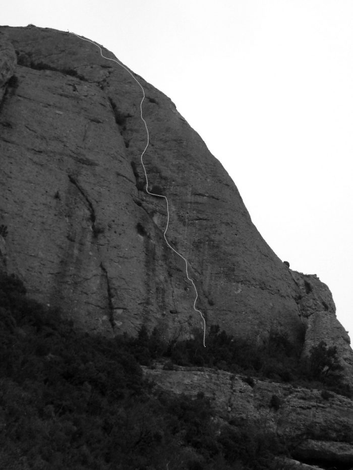La via aprofita els primers metres de la Funció Clorofil·la fins arribar al peu d’un primer mur que ataca sense contemplacions; verticalitat i bons forats.